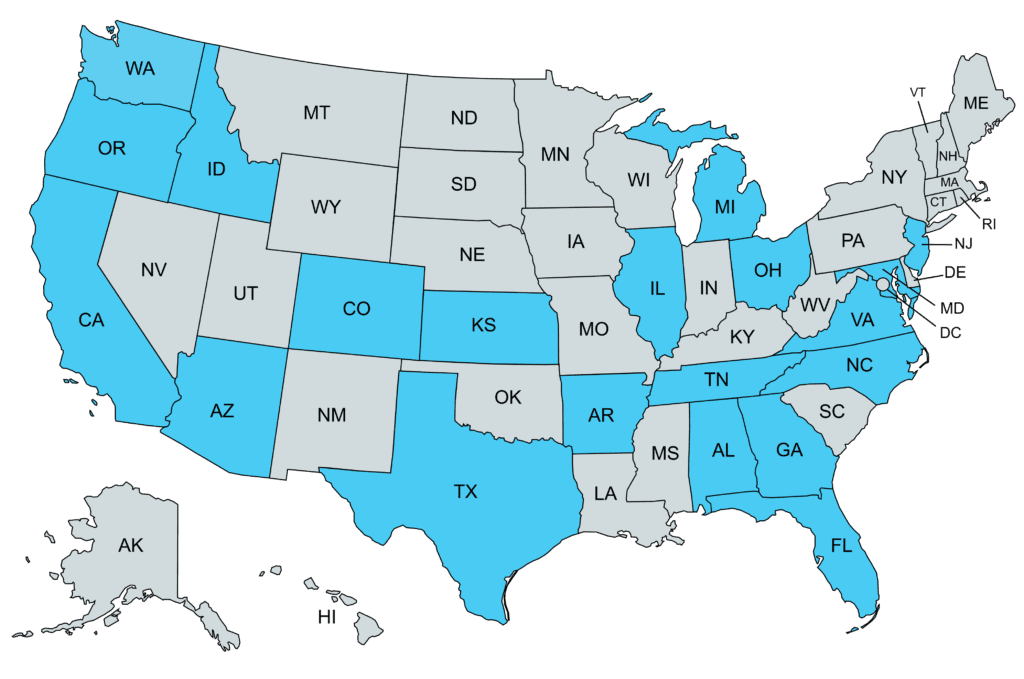 We are licensed in 20 states: